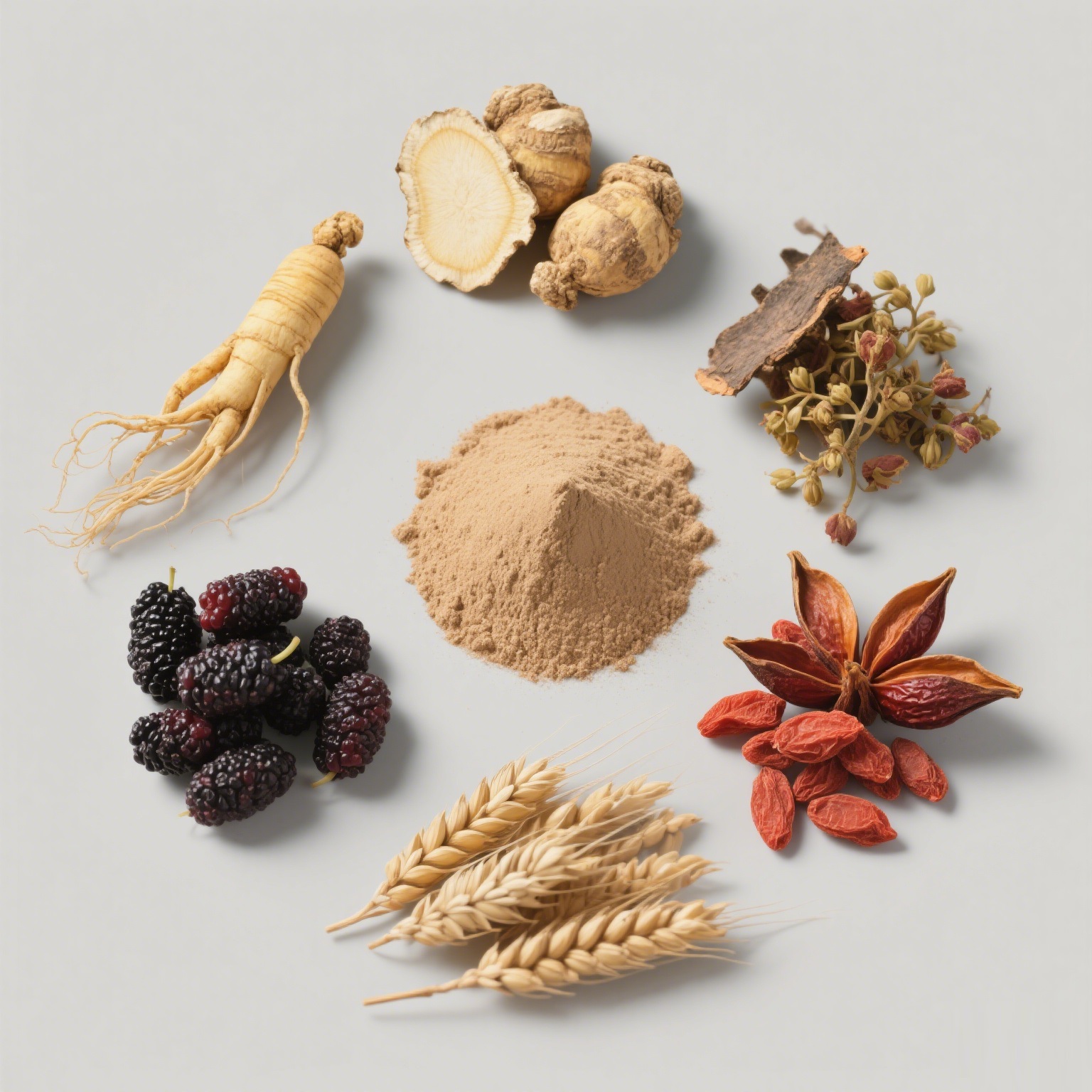 Selected from nine kinds of herbs including ginseng, maca powder, reishi mushroom, juniper pollen, mulberry, goji berry, barley, red dates, and gardenia, scientifically combined.