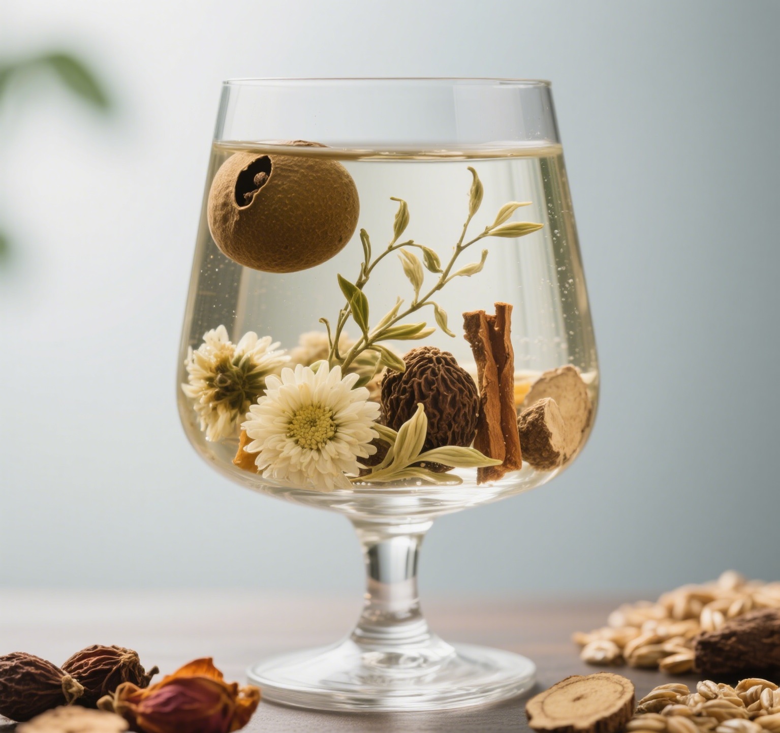 Selected from nine herbs including luo han guo, fat sea buckthorn, honeysuckle, chrysanthemum, licorice, burdock root, gardenia, dried tangerine peel, and barley, expertly blended.